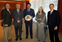 ExpiradoBernardo Kliksberg, María Kodama y Juan José Almagro, dieron al presidente de la compañia, Borja Prado, la estatuilla diseñada por Alejandro Kokocinski.